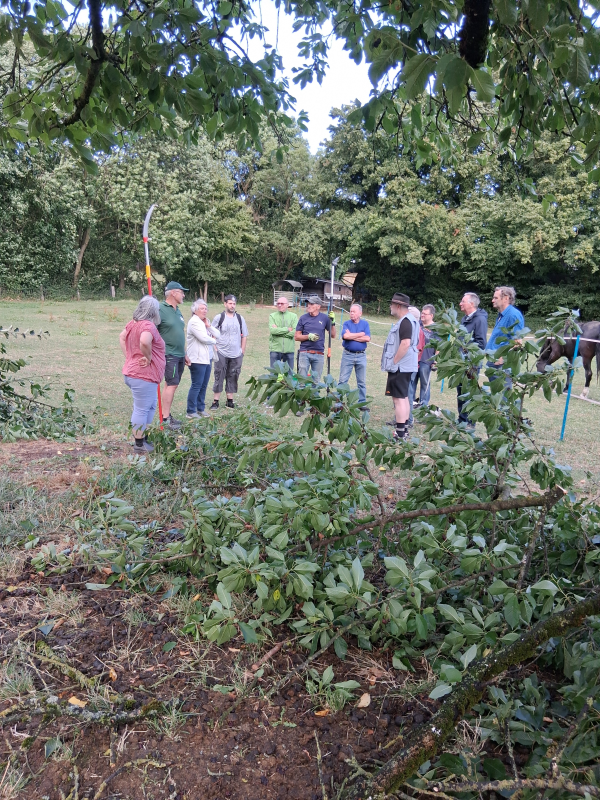 Peter Burger leitete an diesem Tag diesen Schnittkurs und erhlärte den Teilnehmern den Schnitt an einem Kirschbaum. Hier sehen Sie Bilder vom Schnittkurs. Wir hatten Glück. Vor dem Kurs und nach dem Kurs regnete es sehr heftig.