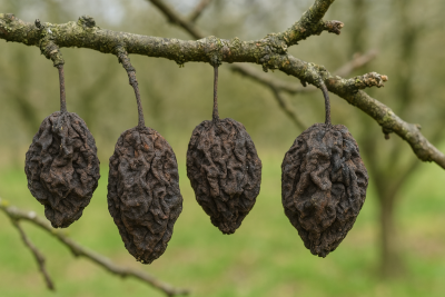 Entfernen Sie alle Fruchtmumien, Raupennester oder Eigelege von den Bäumen.